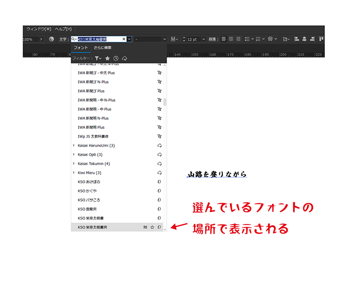 これだけで、「さっき選択したフォントの場所」に戻ることができます。