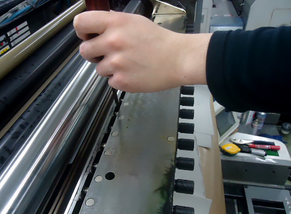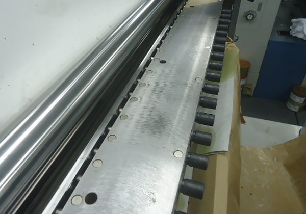 印刷時はインキが常に入っているので、掃除をしないと隙間に入ったインキが固まってしまい、ビスの動きが悪くなります。こうなるとインキ量の調整がうまくいかず、印刷面に影響が出る場合があります。
