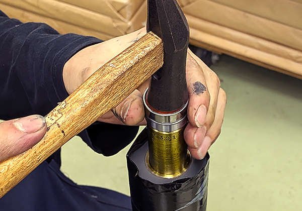 新しいローラーにベアリングを取り付け(下の写真↓)。
