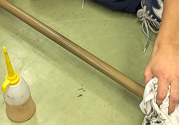 古いローラーを外し、リルサンローラーの掃除を実施。