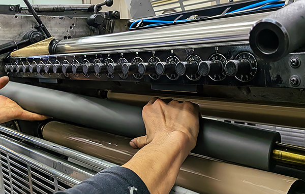 年度末の繁忙期を前に、2色機のインキローラーを交換しました。